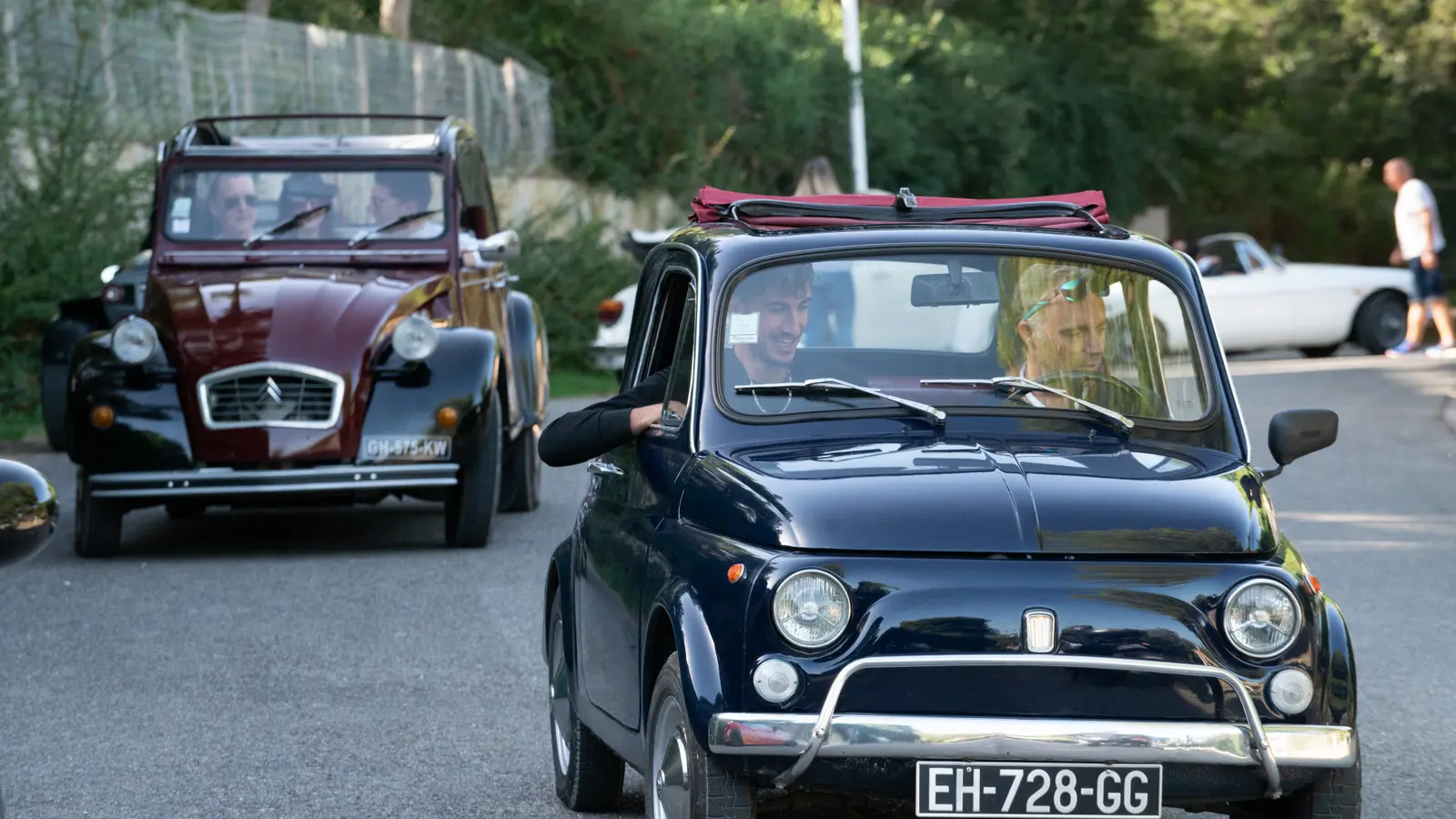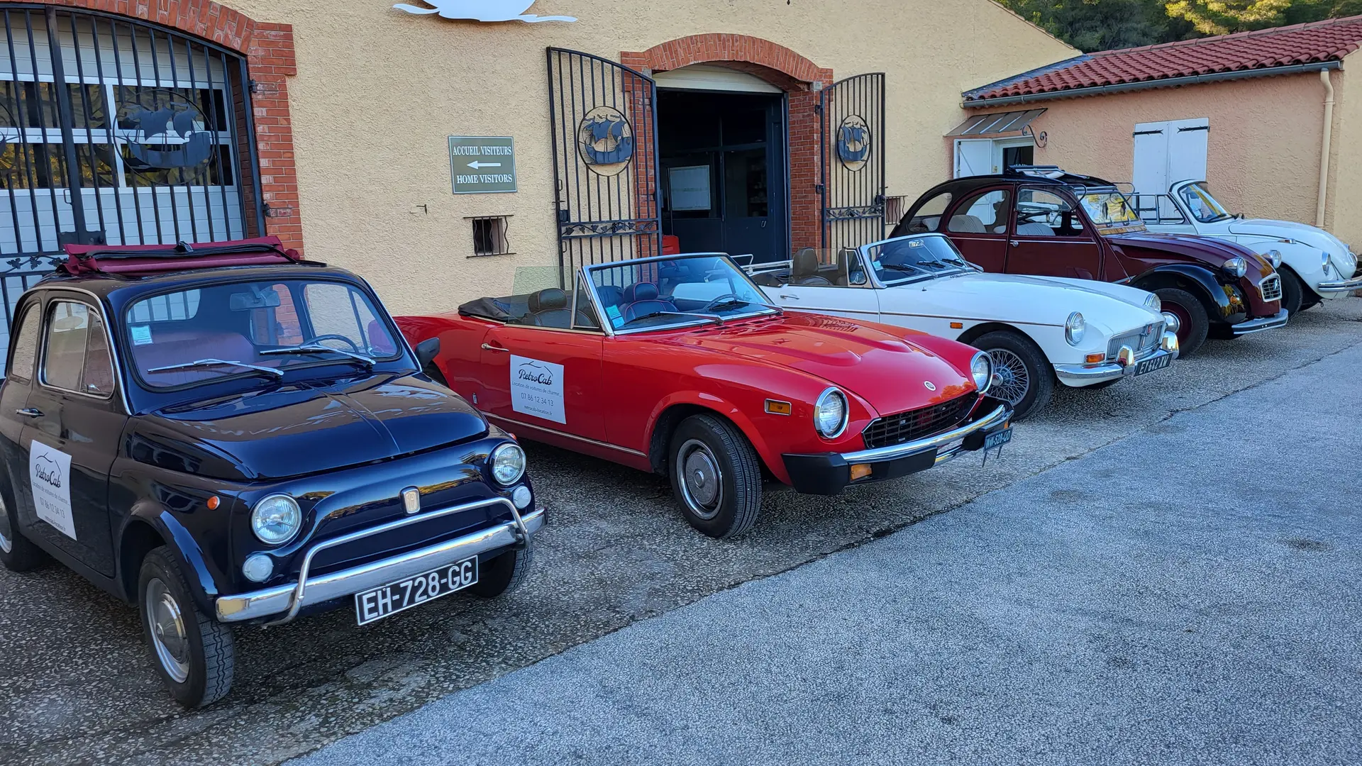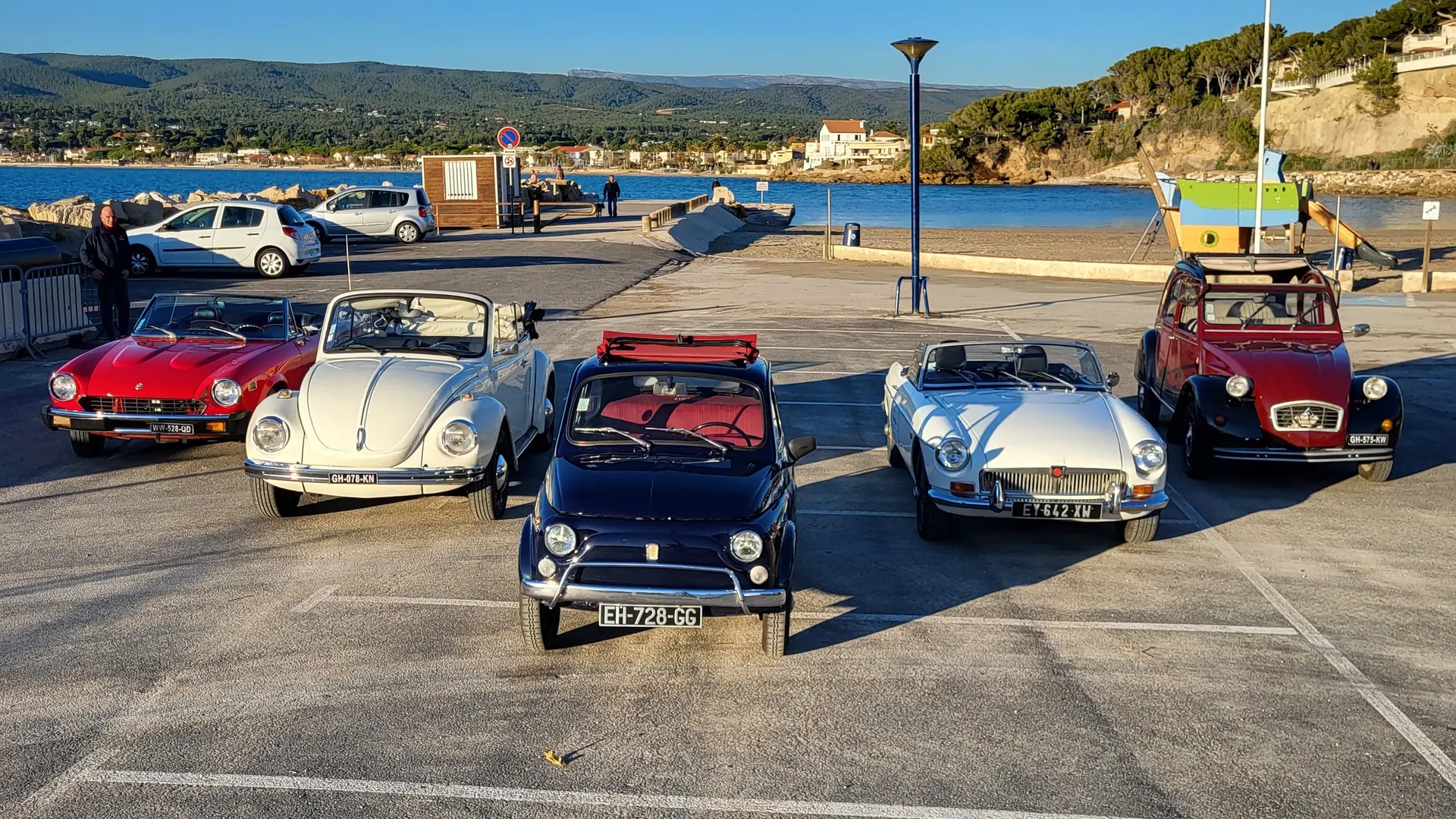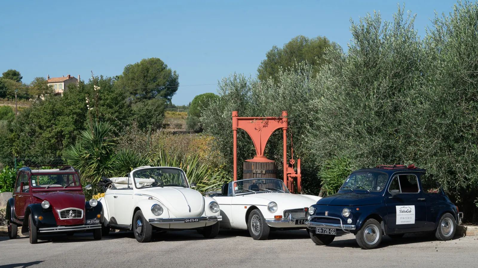 De Brigitte, l’incontournable 2 cv à Jane, la sportive MGB, de Luigi, notre minuscule Fiat 500 à Janis, l’iconique Coccinelle Cabriolet, en passant par le charme italien de Claudia, la Fiat 124 Spider, elles sont disponibles pour ce voyage entre deux siècles, entre terre et mer.