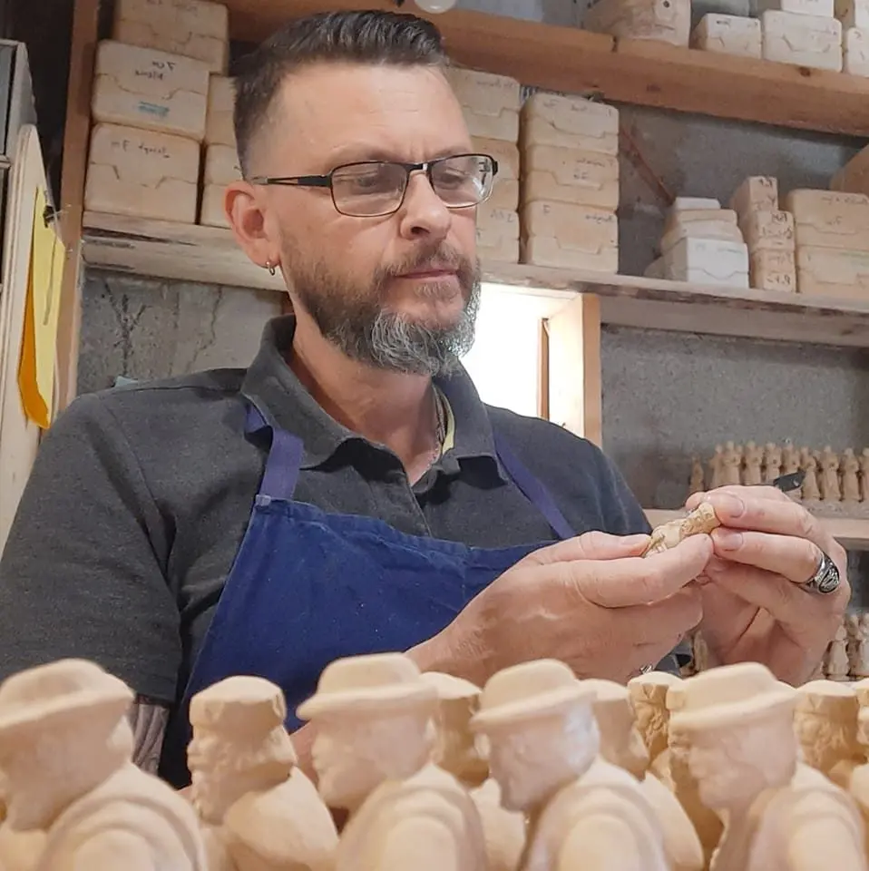 Frédéric Lambert produit des santons en terre cuite et des décors de crèche depuis plus de 25 ans. Des sujets puces aux personnages de 12 cm, bruts ou peints, ses santons à la fois naïfs et expressifs gardent leur caractère très traditionnel.