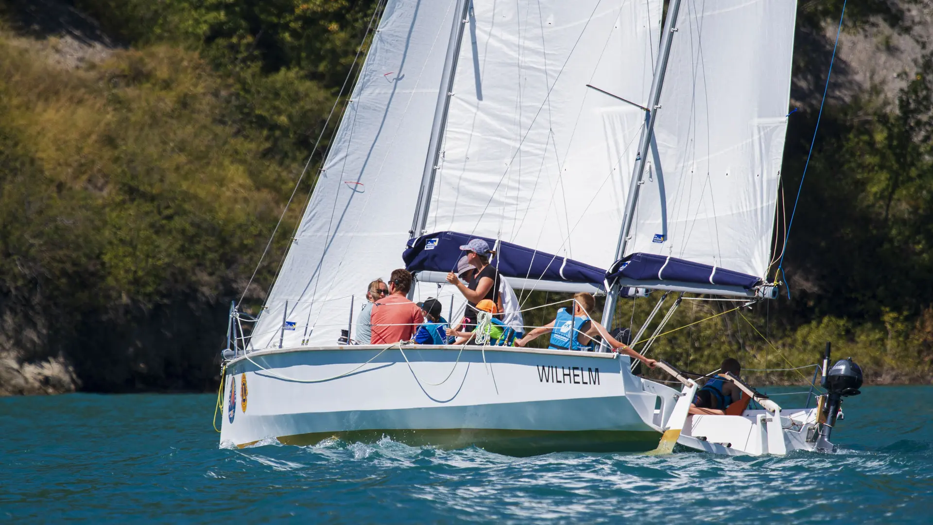 Vous pourrez barrer le voilier, hisser les voiles, border ou vous laisser porter sur les flots et admirer le paysage magique du lac.