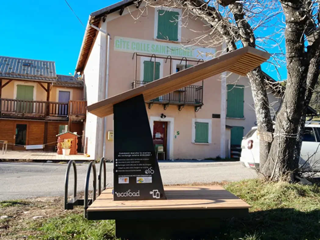 Stations de recharge solaire pour le rechargement des vélos à assistance électrique munie de trois supports vélo et de prises standards.