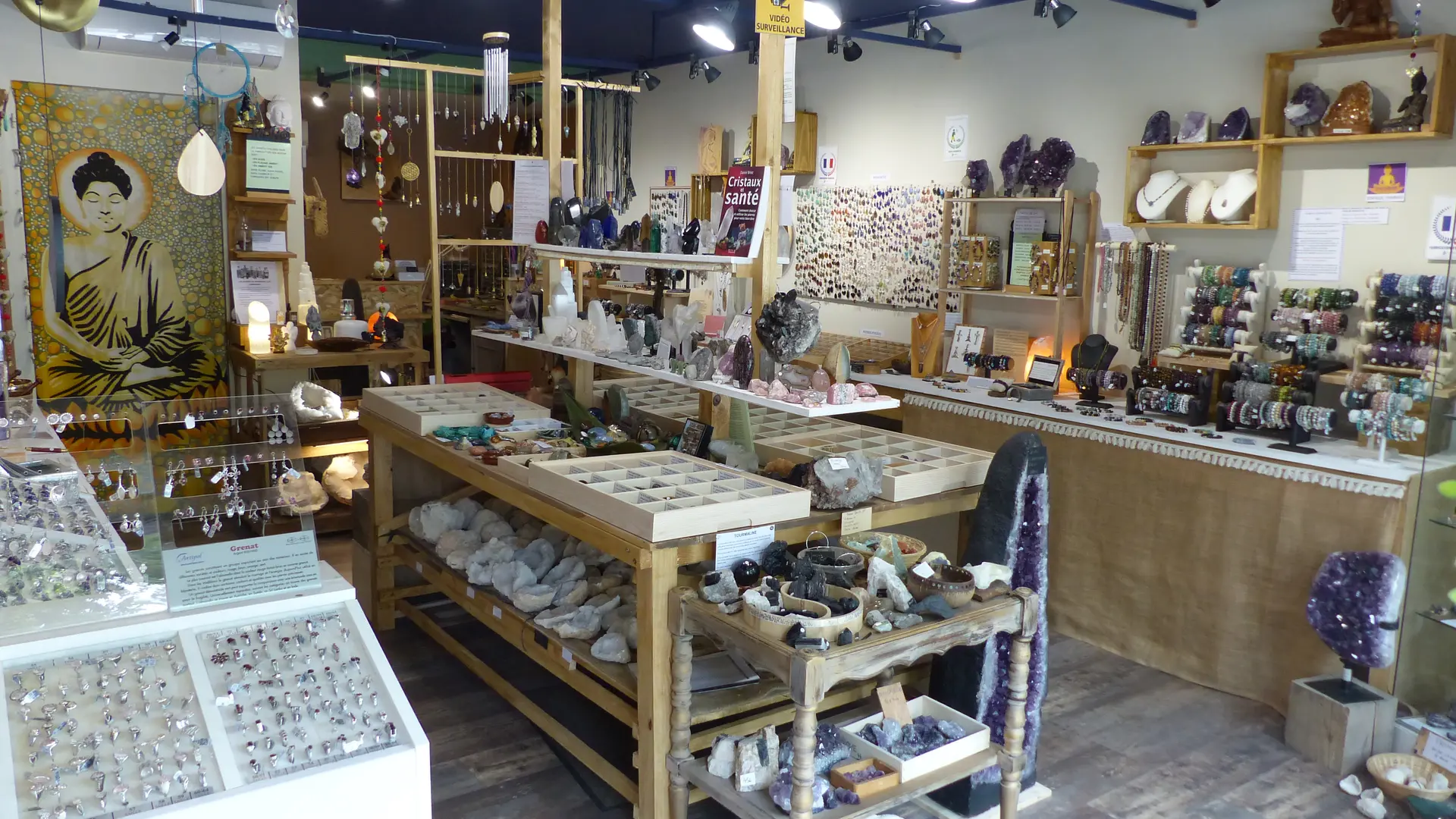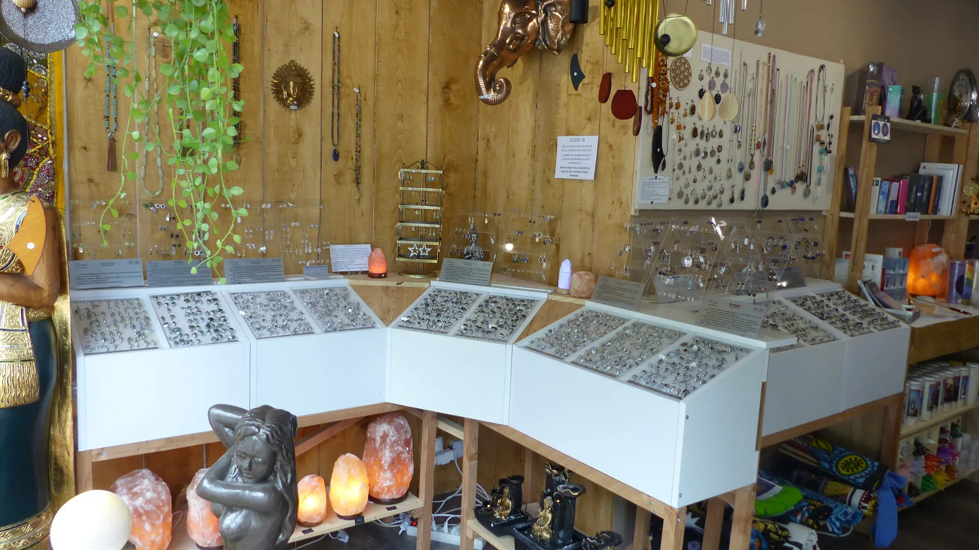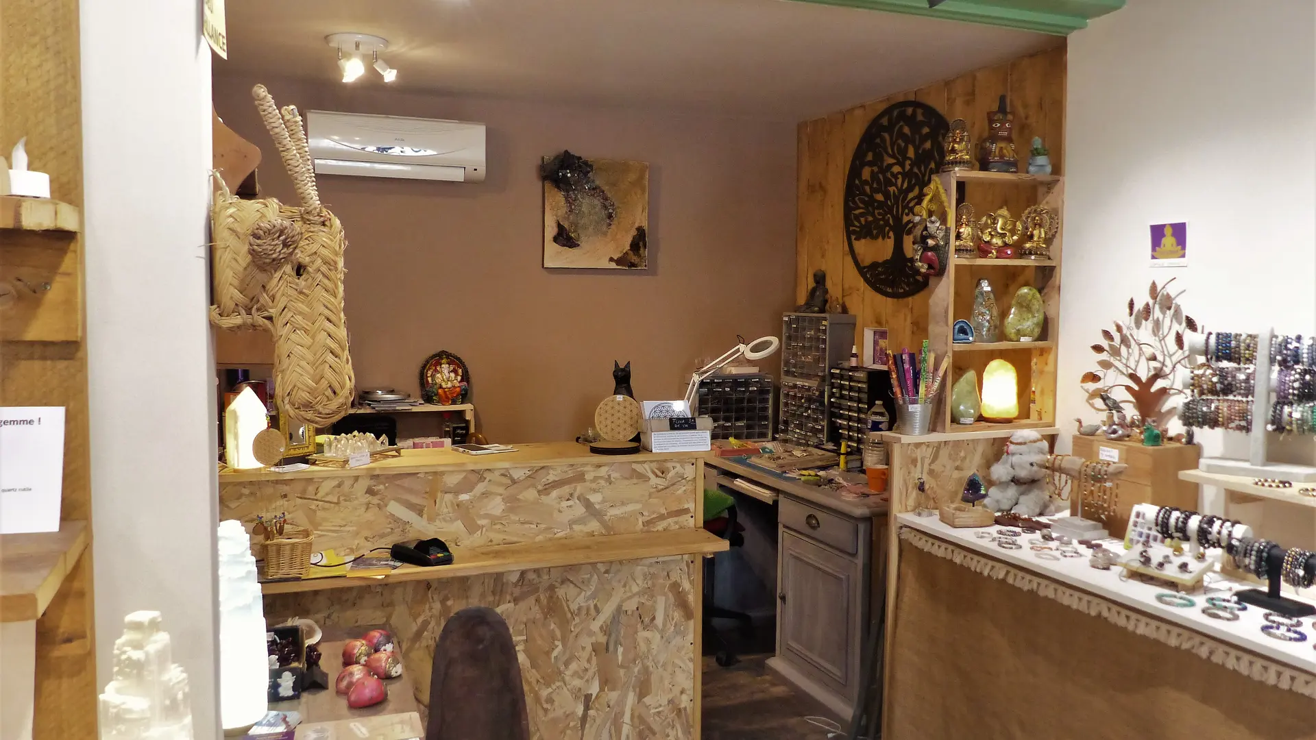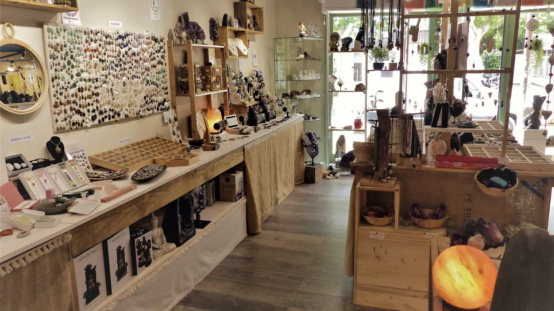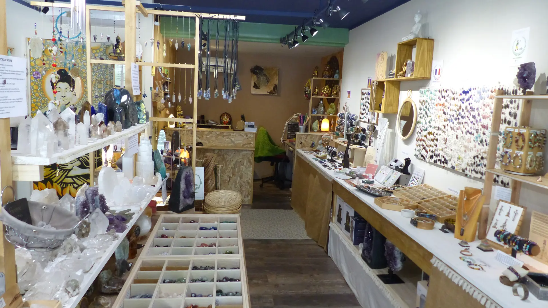 Dans une ambiance relaxante, aux couleurs feutrées inspirées de la nature prendre le temps de découvrir minéraux du monde, déco, encens, huiles essentielles, ésotérisme...