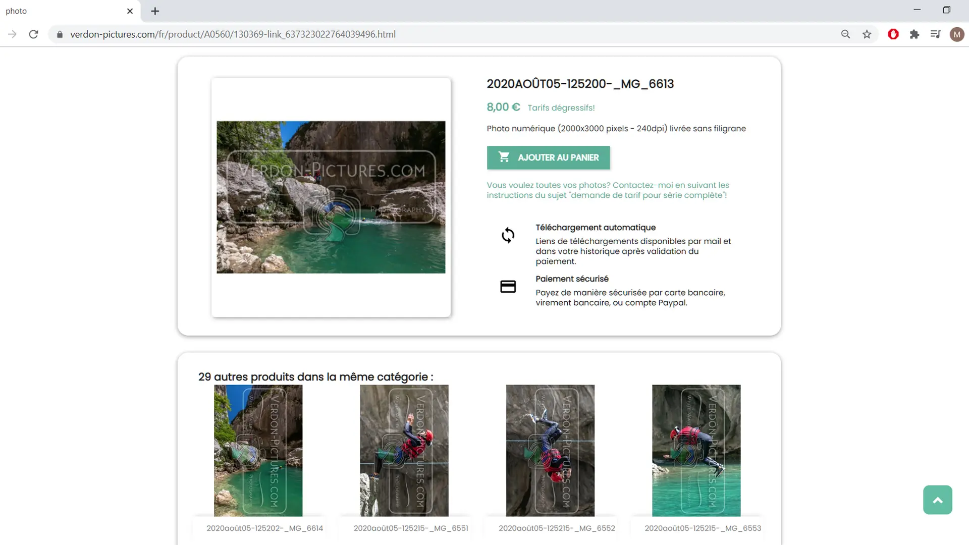Rafting, aqua rando, canoë-kayak... retrouvez les photos de vos aventures en haute définition, dès le lendemain de leur prise de vue. Consultez en toute confidentialité, choisissez, payez de manière sécurisez, et vous recevrez instantanément vos souvenirs par lien de téléchargement ! Les photographies issues de fichiers RAW haute qualité, ou "négatifs numériques", sont retouchées individuellement et préparées afin de vous garantir une qualité maximum.