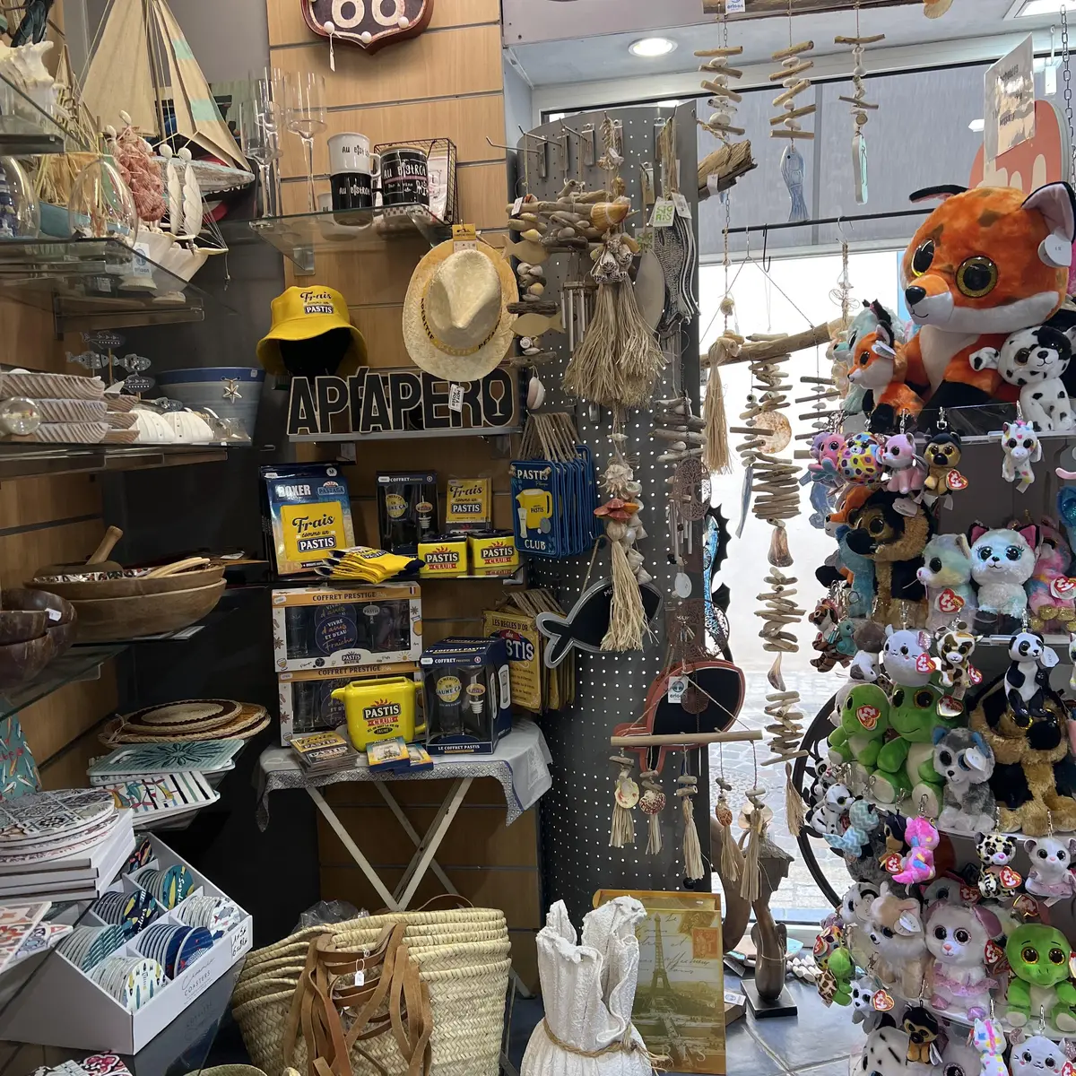 Vente de Tee shirts, accessoires, chapeaux, souvenirs de Cassis, souvenirs de Provence, déco, vêtements, bijoux, lunettes de soleil, sacs , paniers, savons, peluches TY, huile d’olive, tapenades….
