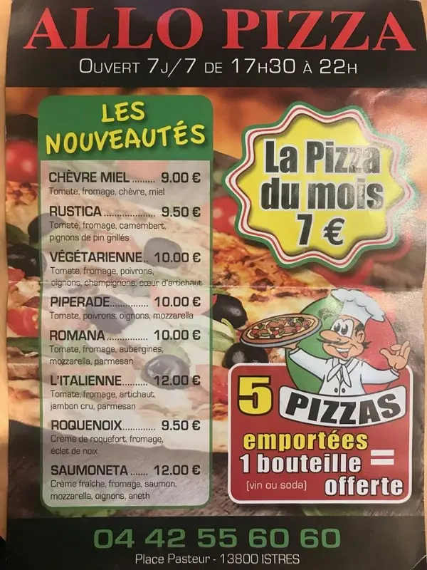 Depuis 1987,la pizzeria Allô Pizza est implantée à Istres place roger Salengro.