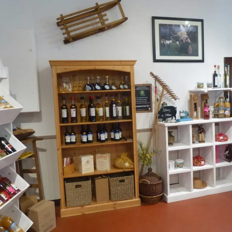 Dans le hall d’entrée, vous trouverez les produits locaux sélectionnés par l’Auberge : Vins de Pays, Miel des Alpes, Pur Jus de Fruits, Vins de Fruits apéritifs, Alcools digestifs, Saucissons Porc de Montagne… etc.
