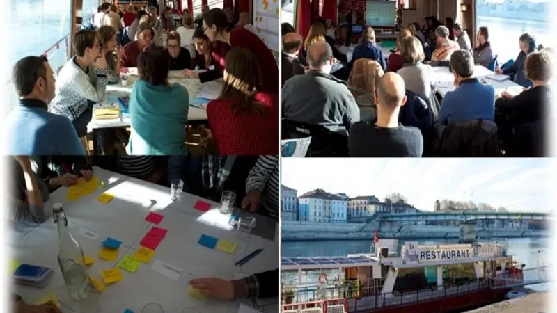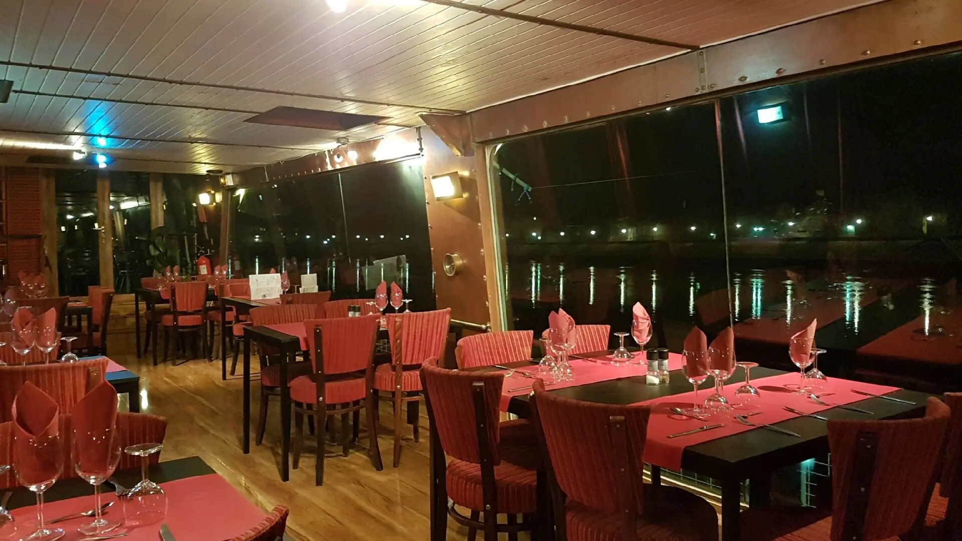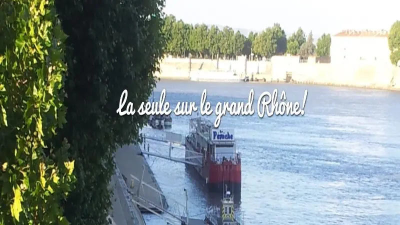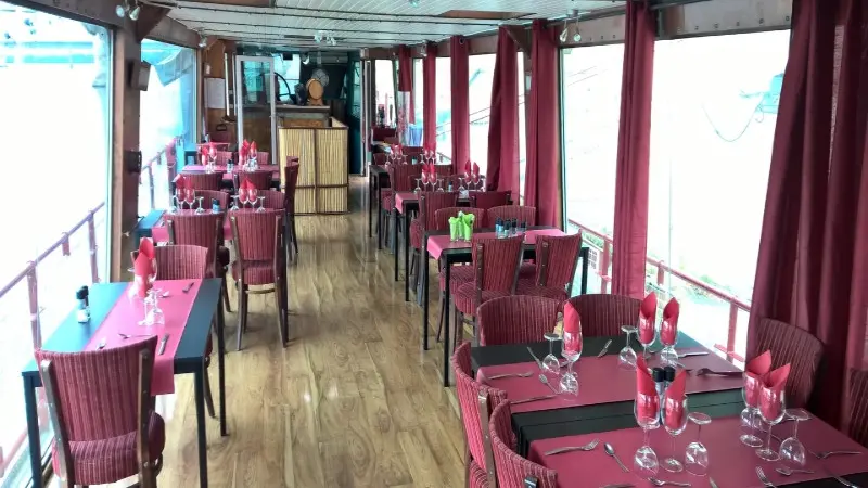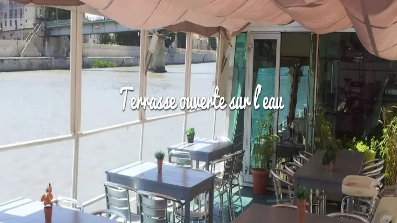 Restaurant sur une péniche située sur le grand Rhône.