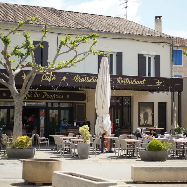 Idéalement située sur la Place Frédéric Mistral, au pied de l'église, la Brasserie du Progrès est véritable lieu de vie.