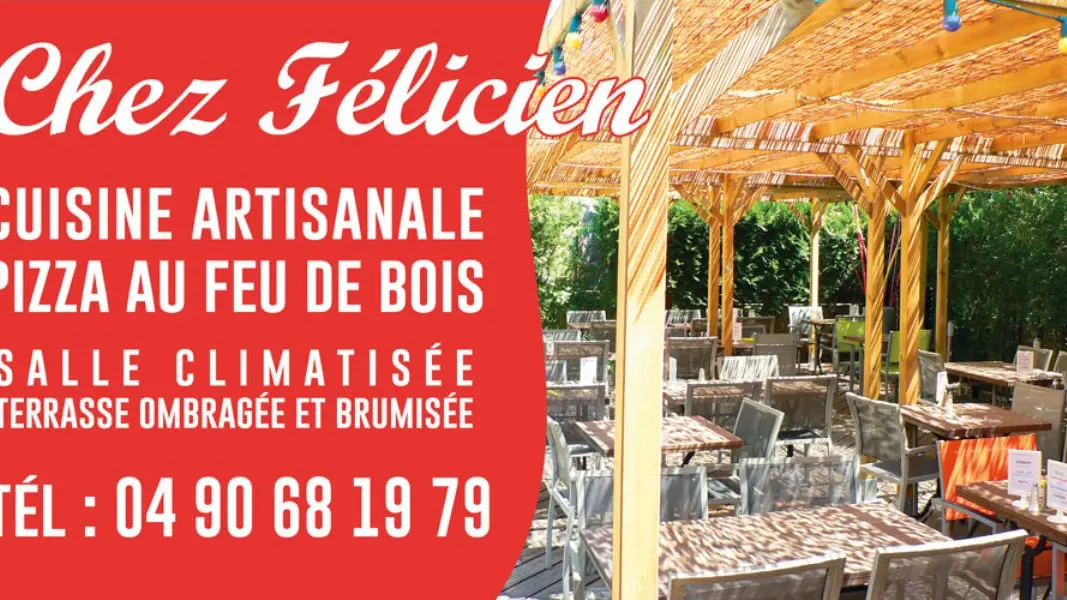 Restaurant caviste. Chez Félicien vous propose une cuisine traditionnelle et provençale avec des produits frais de saison. Pizza au feu de bois le soir et le midi
