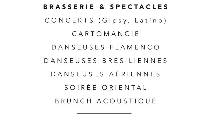 Concerts, shows, cocktails, danseuses Flamenco, Brésiliennes, brunch acoustique, cartomancie...