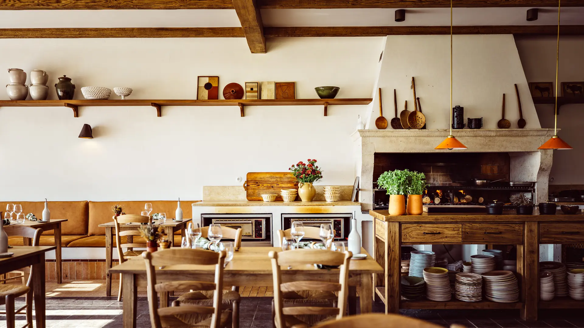 À Bonnieux, La Bergerie célèbre le Luberon avec une cuisine de saison préparée au feu de bois. Dès l’entrée, la cheminée ouverte dans la cuisine réveille les sens : la chaleur du feu, les arômes des plats, et le murmure des flammes invitent à un voyage culinaire au cœur du terroir provençal.