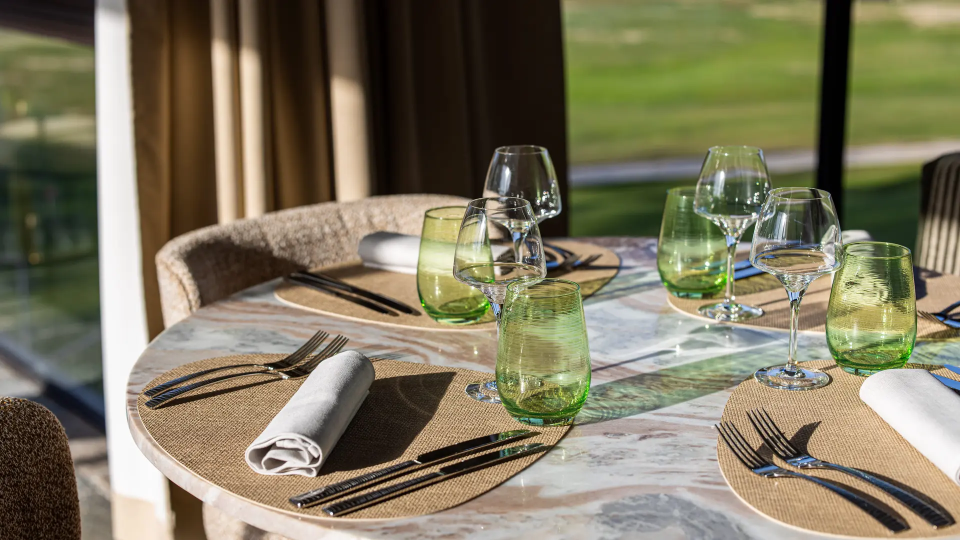 Entièrement re-décorée dans un style lounge avec un superbe mobilier en wengé, elle accueille les joueurs de retour de parcours, repas d'affaires et autres déjeuners entre amis en salle ou en terrasse avec vue sur les fairways