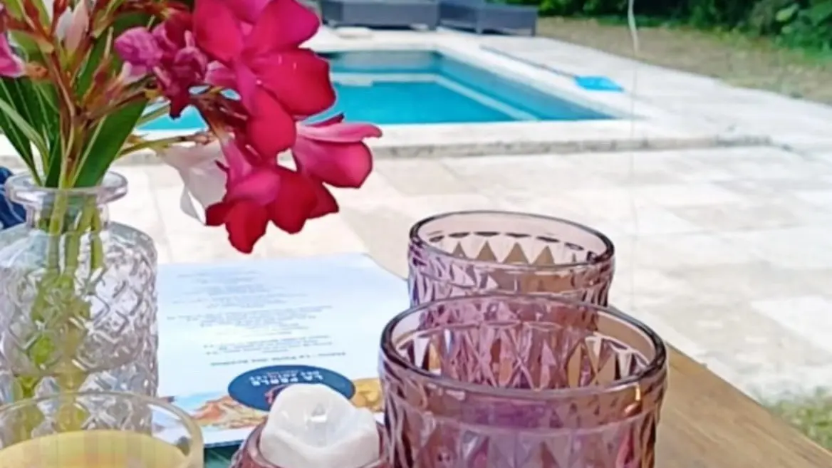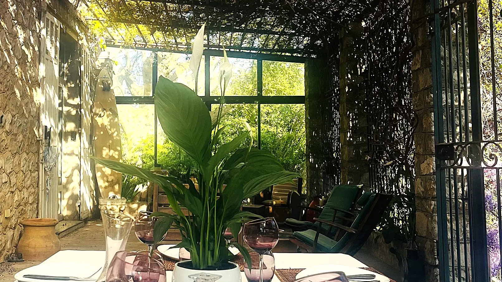 Dégustation de vin rosé en terrasse, sous le soleil de Provence, avec vue sur la campagne environnante.