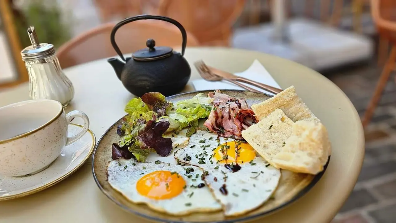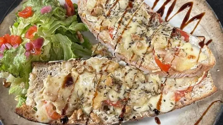 Boissons fraiches et chaudes, des tartines salées, omelettes accompagnées de salade verte et légumes du jour.