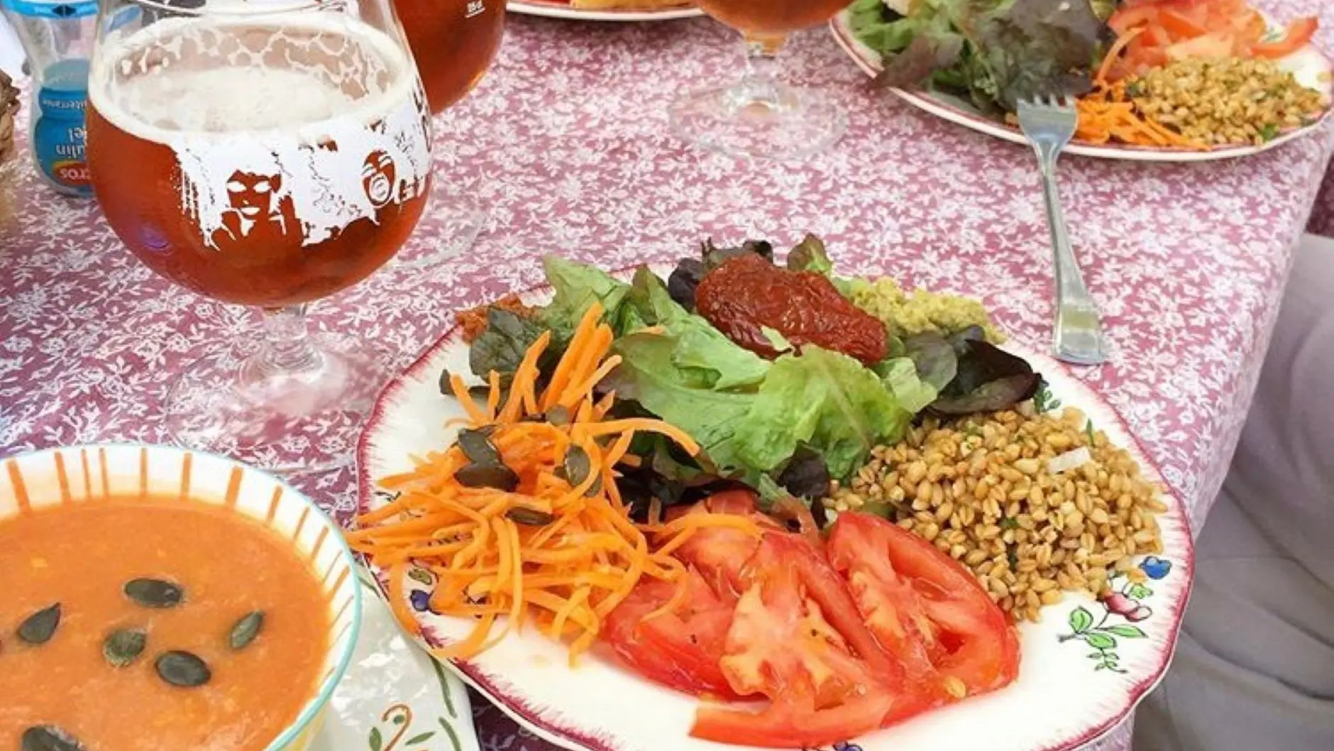 Au menu, du frais, du bio, du local, des plats sans gluten, végétariens ou végans, le tout peint aux couleurs des saisons. C'est simple, c'est maison et ça se partage dans la spontanéité et la convivialité de ce petit coin de nature. Une magnifique découverte pour les randonneurs et les cyclistes qui pourront recharger leur vélo, faire le plein d'énergie et de poésie...