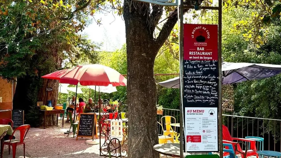 En centre-ville, situé au cœur de l'île aux Brocantes, le bar et restaurant « Le Bistrot de Coco », est un petit paradis bien caché, avec sa belle terrasse pour des moments de plaisirs partagés, en famille ou entre amis, en bords de Sorgue.
