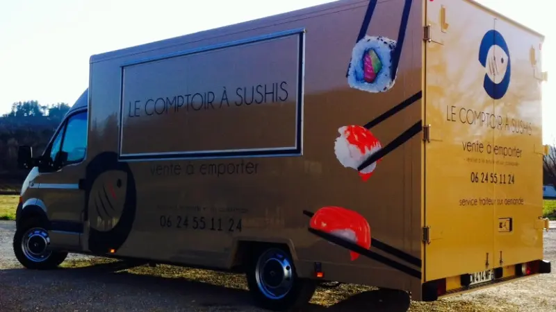 Le Comptoir à Sushis vous propose des plateaux de sushis, sashimis, makis, makis californiens..., mais aussi des brochettes poulet et boeuf yakitoris, des salades et soupes, le tout à emporter. Tout est élaboré à la minute et sur commande.