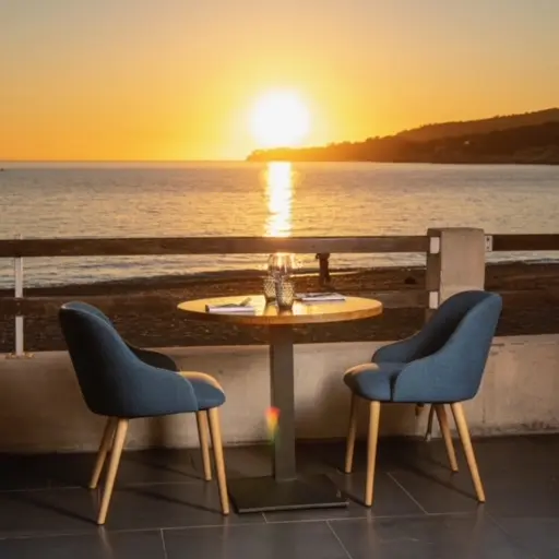 Vous pouvez profiter pour le déjeuner de la carte méditerranéenne et de nos sushis pour vos repas de loisirs, d'affaires, dans son cadre extraordinaire et aussi de mai à septembre sur l'espace plage. Le soir, face à la mer, vous pourrez dîner au calme, déguster une de nos spécialités.