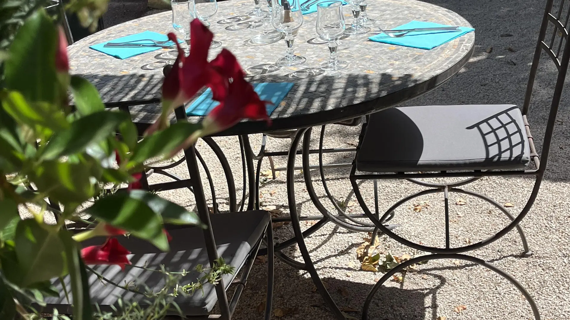 Dès l’arrivée des beaux jours, c’est sur la terrasse ombragée que les déjeuners et diners sont servis midi et soir.