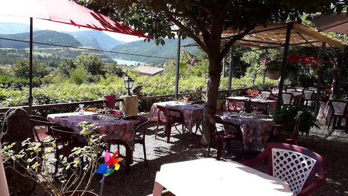 Restaurant avec une belle terrasse offrant une vue sur le lac de Castillon et le village de Saint-André-les-Alpes.