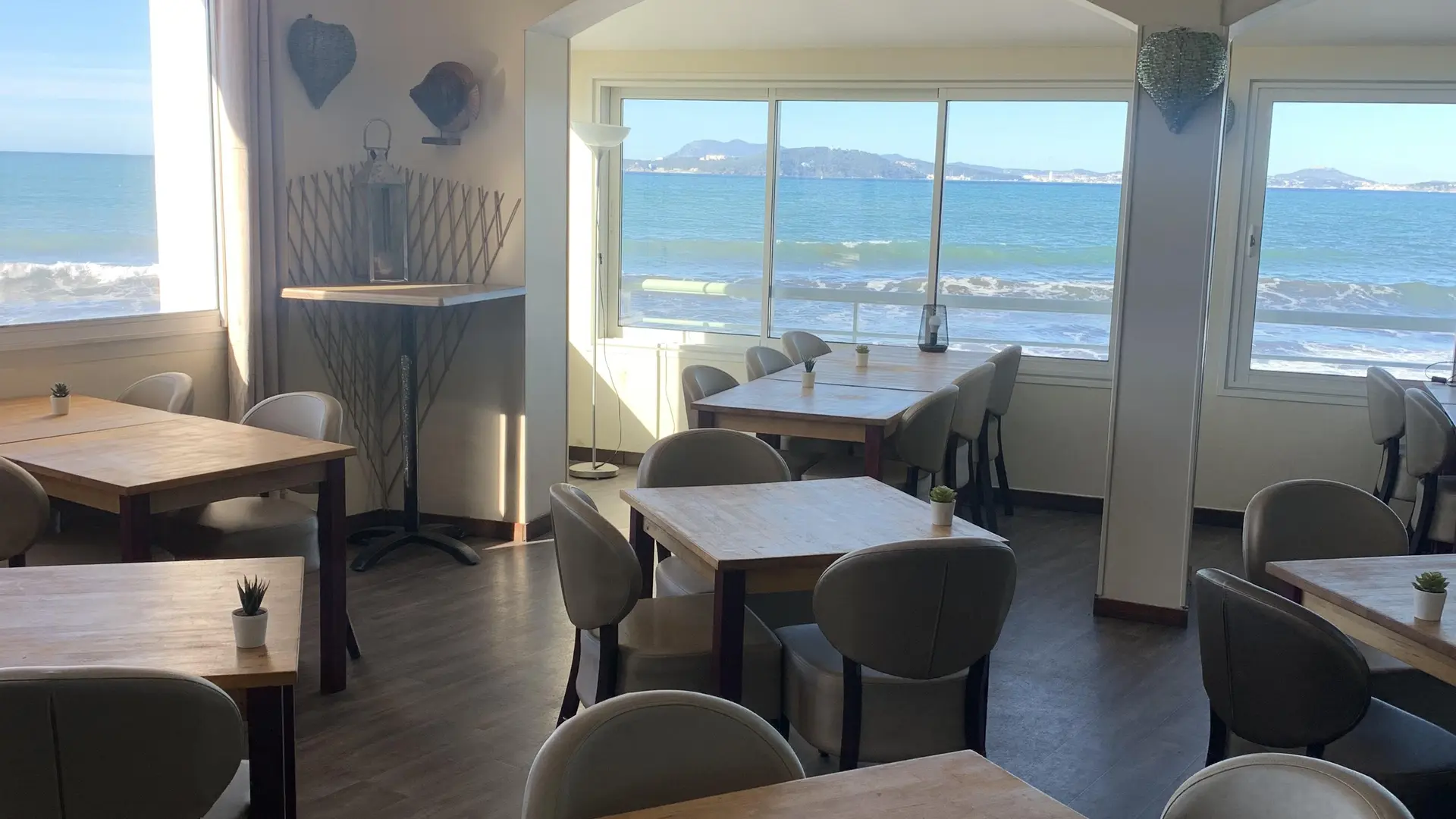 Restaurant en bord de mer avec une vue magnifique sur la rade de Toulon.