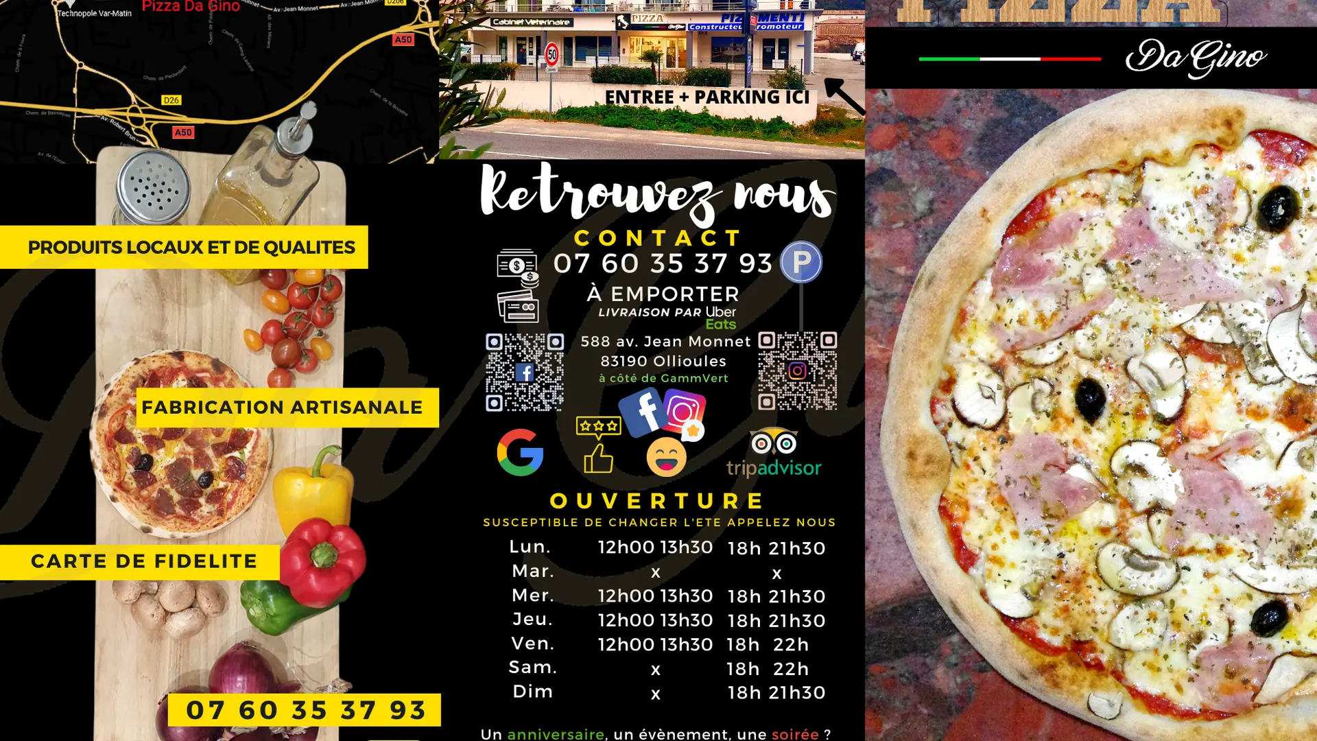 La pizzéria PIZZA DA GINO à Ollioules est un établissement qui propose des pizzas traditionnelles italiennes, préparées avec des ingrédients frais et locaux de qualité. Vous pouvez y déguster des pizzas classics, traditionnels !
