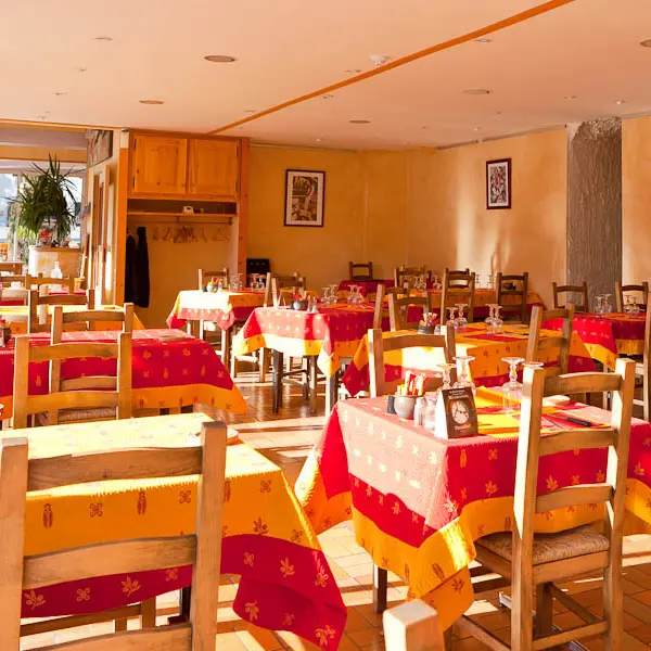 Grande salle colorée et lumineuse. 60 places sont à votre disposition. Fêtes de familles, repas de clubs ou d’amicales, événements, notre salle peut être louée.