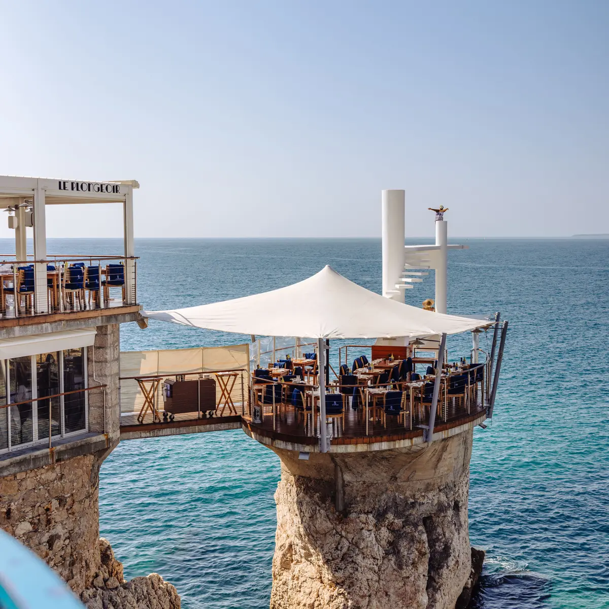 Installé dans un site emblématique de Nice, posé sur la mer, le restaurant vous accueille dans ce lieu atypique, chargé d’histoire sur le Plongeoir et le Rocher.