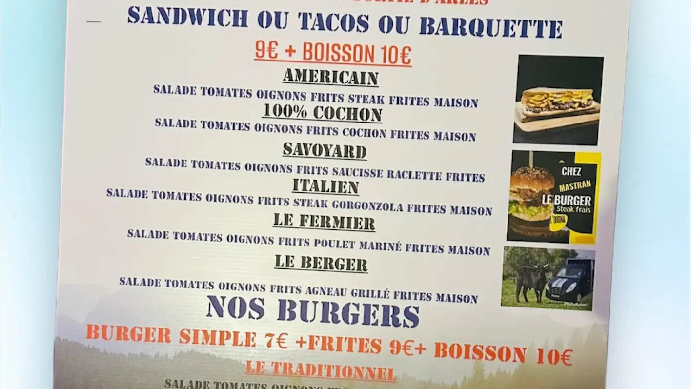 Nous travaillons uniquement des produits frais ( Steack frites maison burgers et dessert maison.)