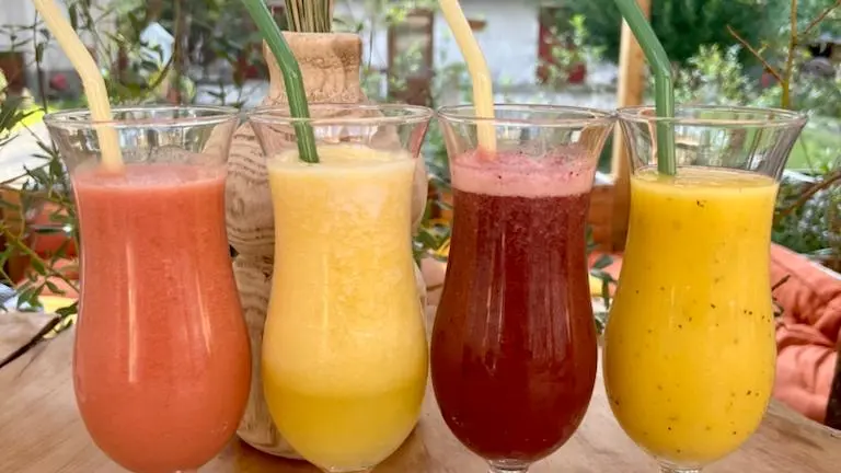 des jus pressés à l'extracteur, smoothies, milkshakes, crema di café, chocolats italiens, glaces et crêpes, kéfirs, kombucha, chai, matcha latte.